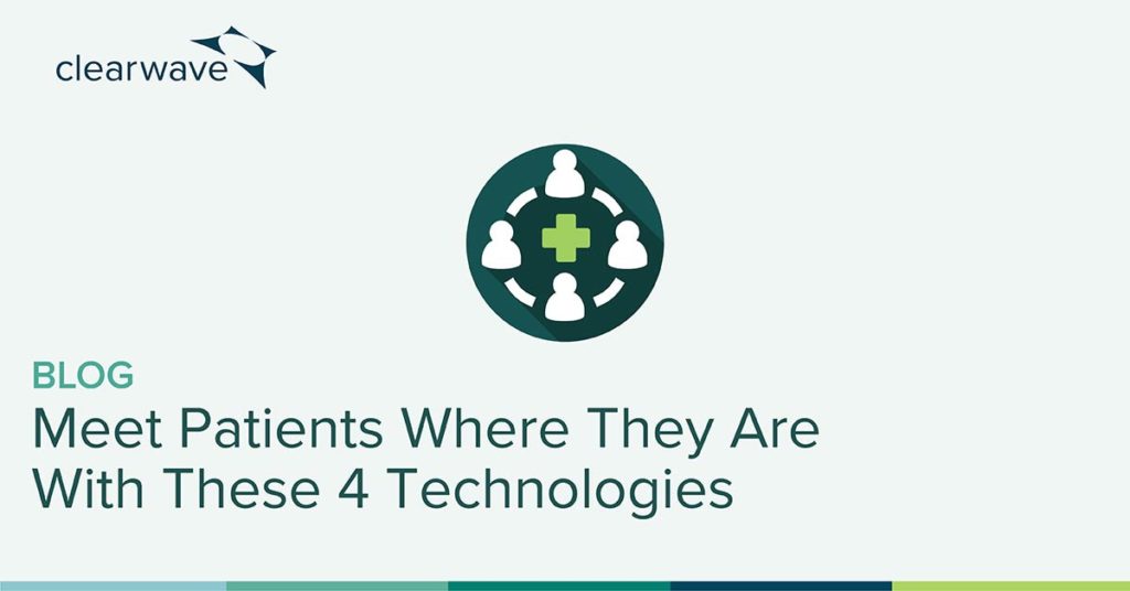 Reading Time: 3 minutes To fully initiate a healthy level of patient engagement, providers must offer accessible care with room for patient involvement. Involving the patient includes adaptation for their schedules and lifestyles, as well as utilizing the technology they already prefer. Learn how these 4 technologies, available with Clearwave, build a successful foundation for responsive engagement.