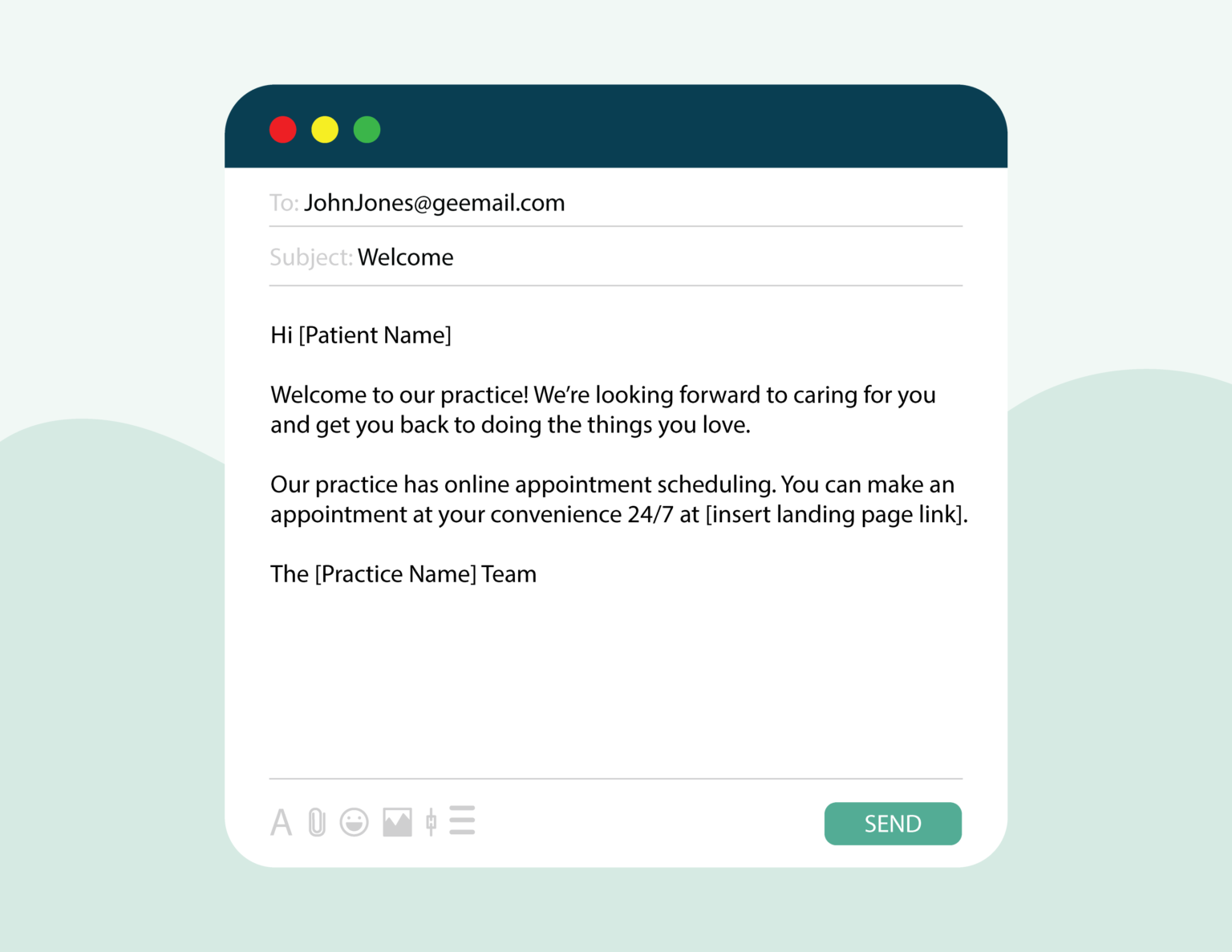 Once you’ve determined your go-live date for your scheduling tool. Let patients know! Build a multi-part email campaign to keep patients in the loop that a great new tool is coming. With eye-catching subject lines and design, your existing patients will be more likely to engage.